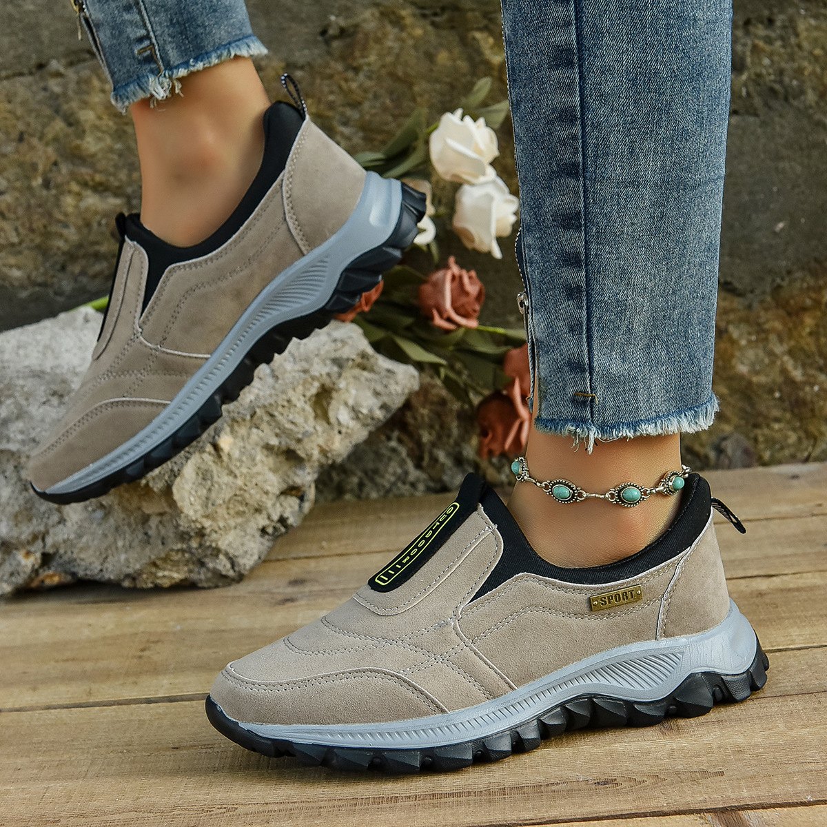 The unique tread pattern grips the ground firmly, reducing the risk of slipping, allowing you to move freely without worry.