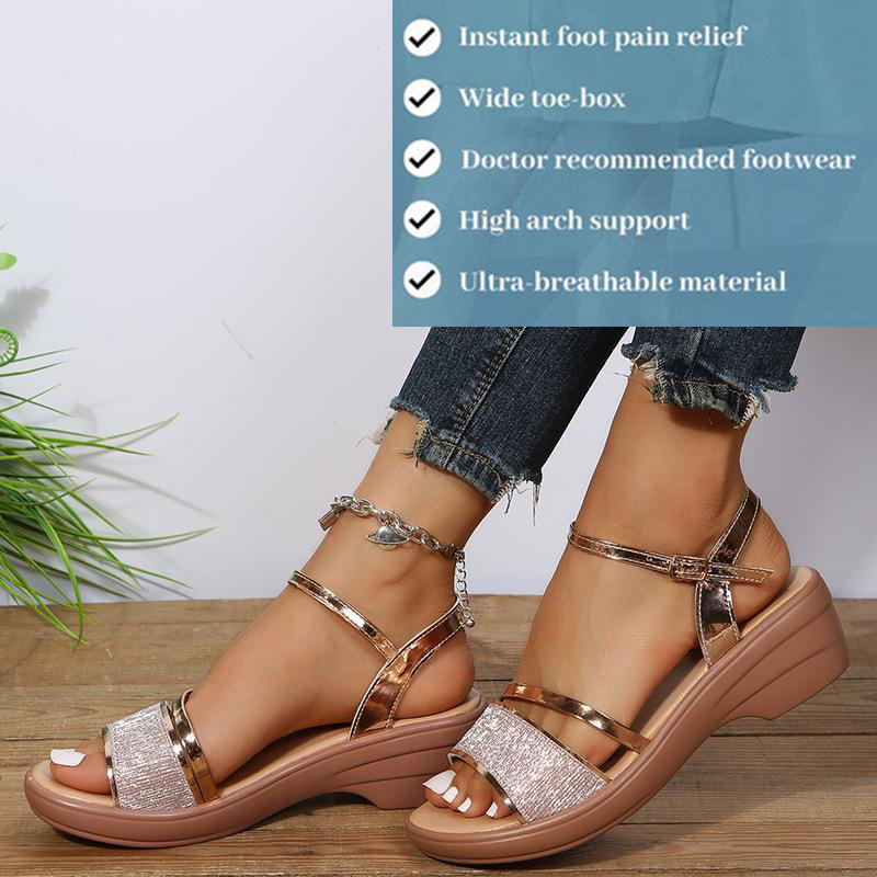 - Elegant Thickened Heels-These shock-resistant wedge heelsstretch the legs to the right height with a spongy cushion.