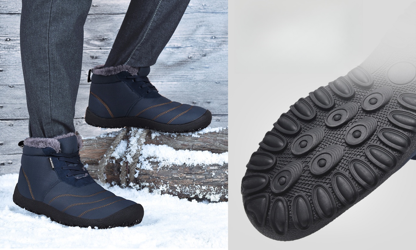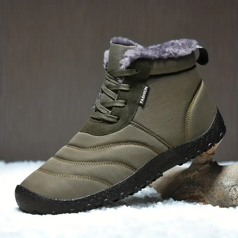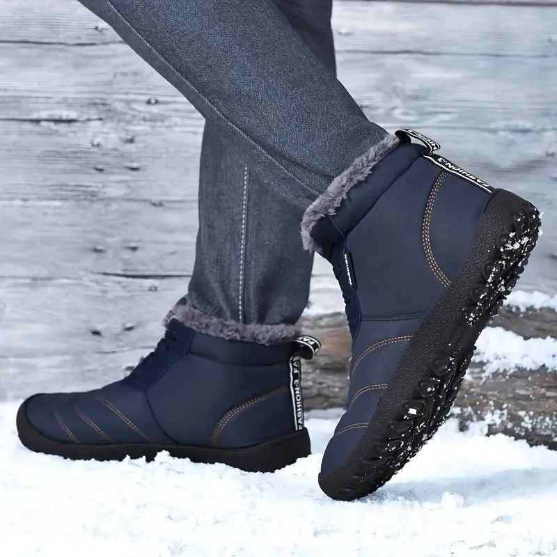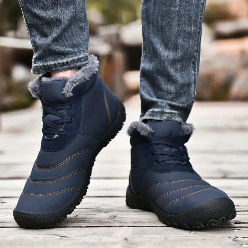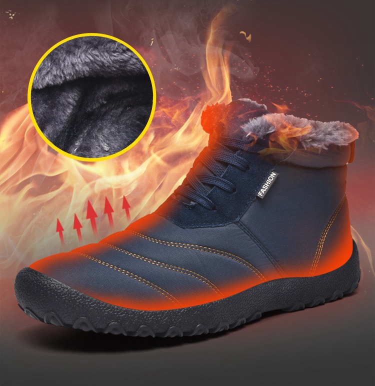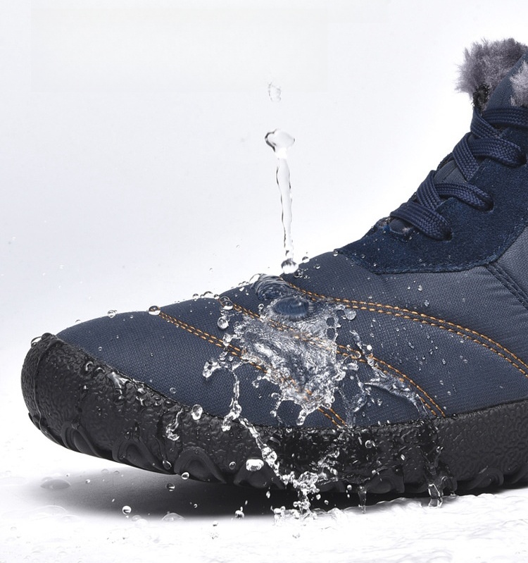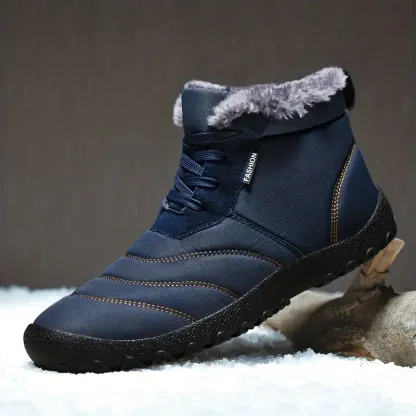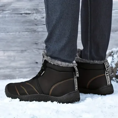 Men's lace-up snow boots, warm winter shoes, windproof boots with plush lining