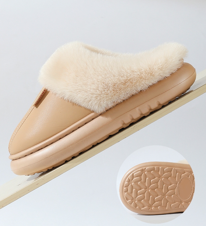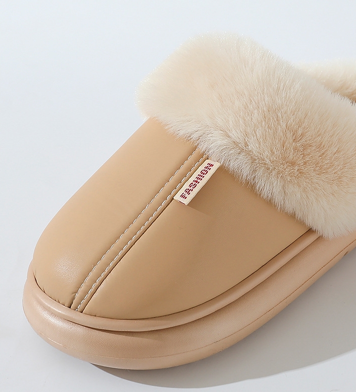 Women's PU leather solid color warm cotton slippers