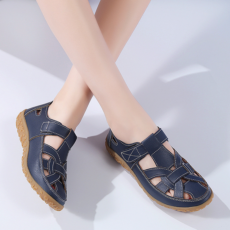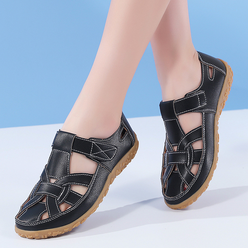 Women's Summer Sandals - Solid Color, Breathable Cut-Out Design, Flat Heel