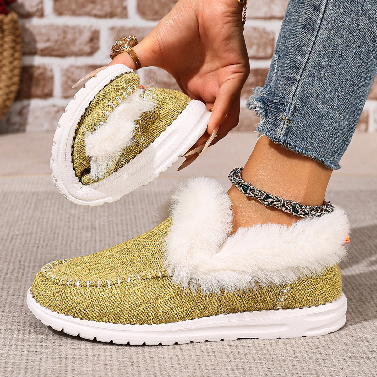 Women's velvet thickened warm flat cotton shoes