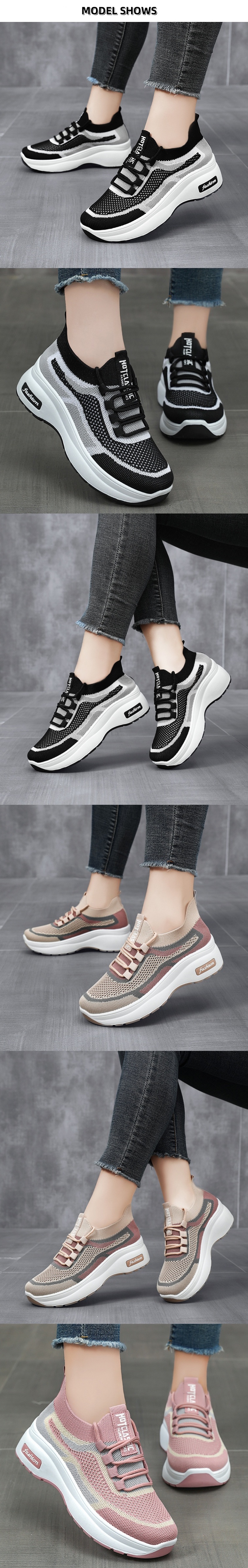 Breathable Upper: The stretchy knit upper has great breathability. Combined with skin-friendly inner lining, this pair of women's shoes provides a dry, breathable, and comfortable environment for your feet.